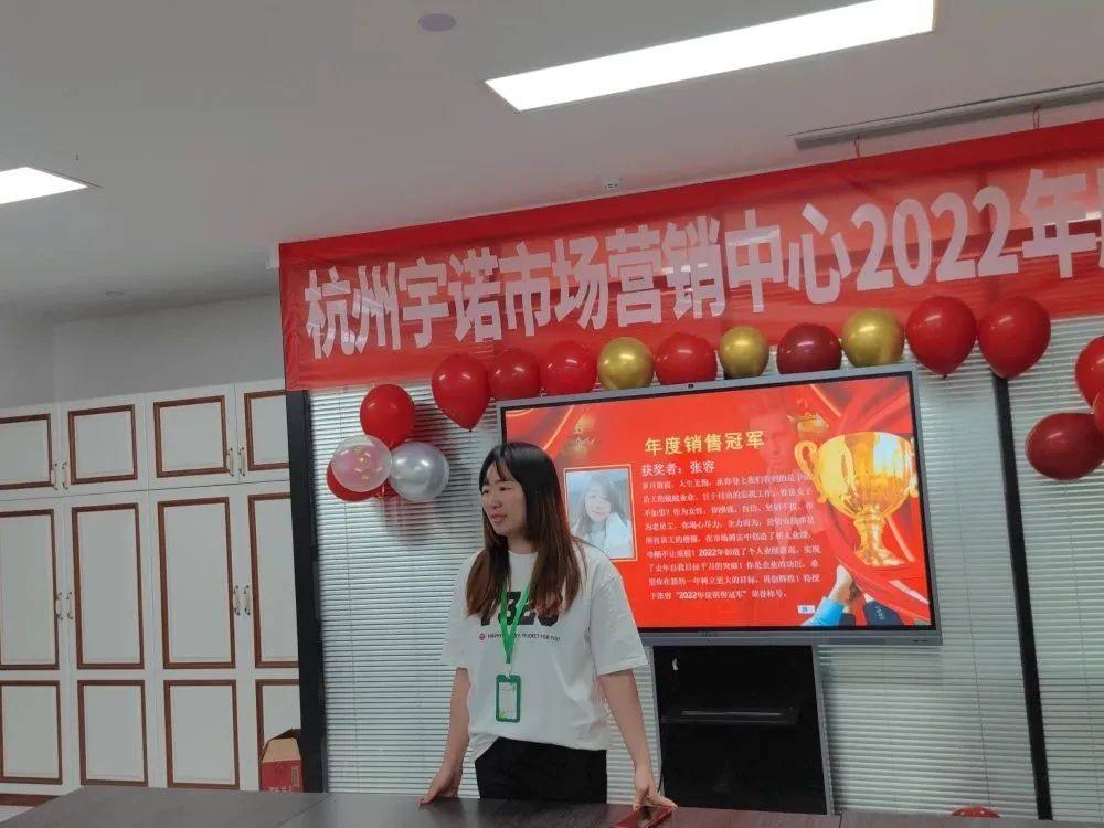 年度銷售冠軍張容上臺發(fā)言,從一名新員工到如今的年度銷售冠軍,她表示能取得如此的成績,正是因為宇諾科技提供了她發(fā)展的舞臺,她為能進入宇諾遇到韓董事長這個伯樂而倍感榮幸。